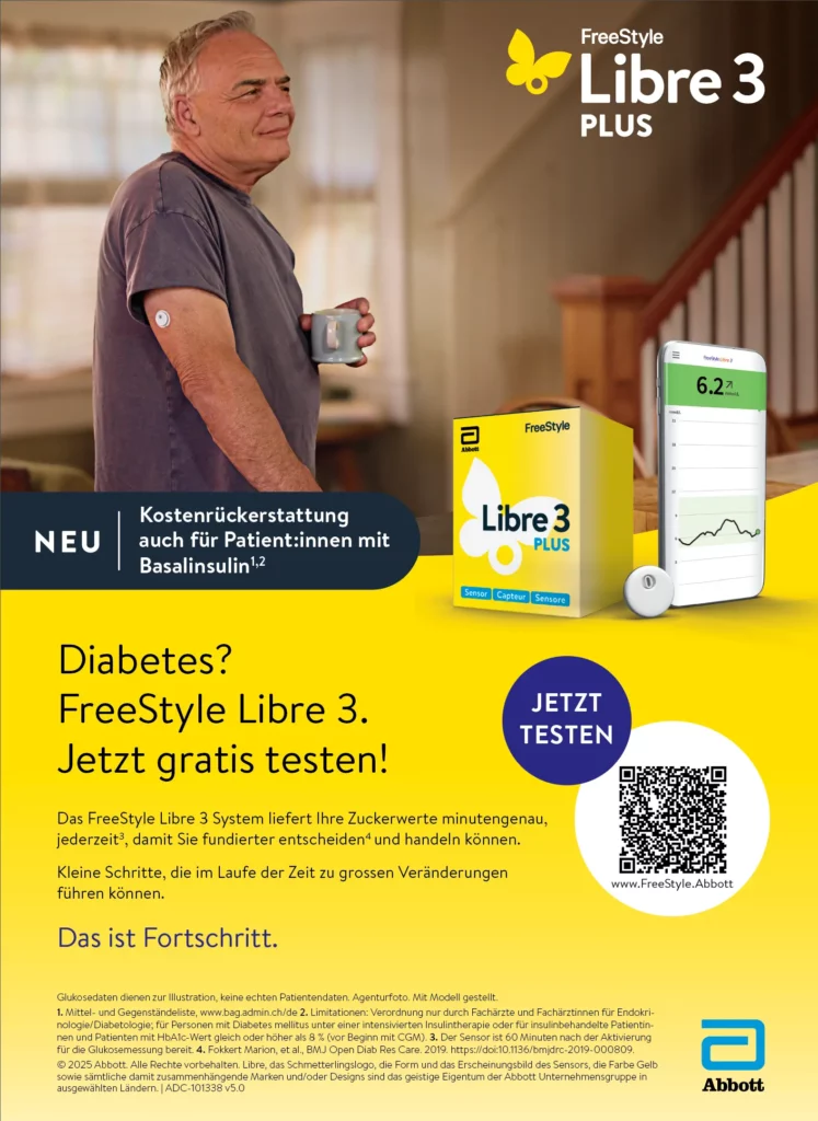 Für Millionen von Menschen mit Typ-2-Diabetes verändern Technologien wie kontinuierlich messende Glukosesensoren (CGM) den Umgang mit dieser Krankheit im Alltag. Wir haben Dr. med. Vincent Guggi, medizinischer Co-Direktor des Centre Médico-Chirurgical de la Broye und Facharzt für Allgemeine Innere Medizin, zur Anwendung von CGM bei Patient:innen mit Typ-2-Diabetes befragt. | Adeline  Beijns