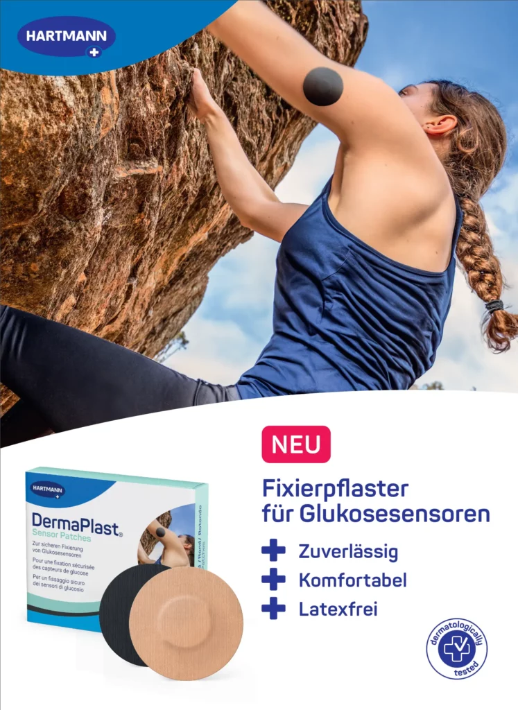 Immer mehr Menschen nutzen kontinuierliche Glukosemesssysteme (CGM), um ihre Blutzuckerwerte zu überwachen. Die Sensoren sitzen unter der Haut und messen dort den Gewebezucker, sodass man jederzeit sehen kann, wie er sich entwickelt. Im Alltag zeigt sich schnell, wie entscheidend ein sicherer Halt und Tragekomfort des Sensors sind, ob beim Sport, im Büro oder beim Einkaufen. Wer ihn richtig befestigt, kann seine Werte kontinuierlich überwachen, Unterzuckerungen frühzeitig erkennen und seinen Alltag besser planen.